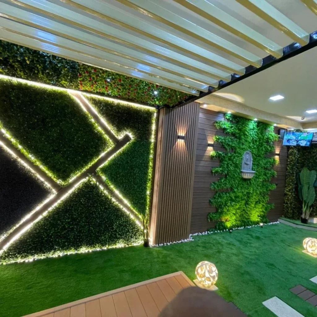العشب الصناعي لا يحتاج إلى سقاية أو تقليم، يتحمل حرارة جدة العالية، ويُركب مرة واحدة ليبقى أخضر طوال السنة.