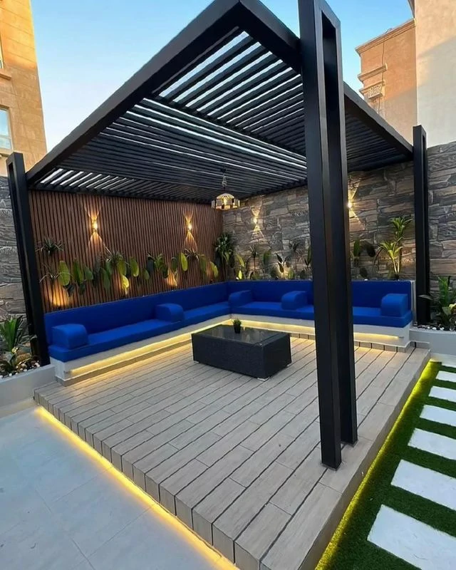مثل المظلات الهرمية أو القوسية، والتي تضيف لمسة ديكورية خاصة للحديقة.