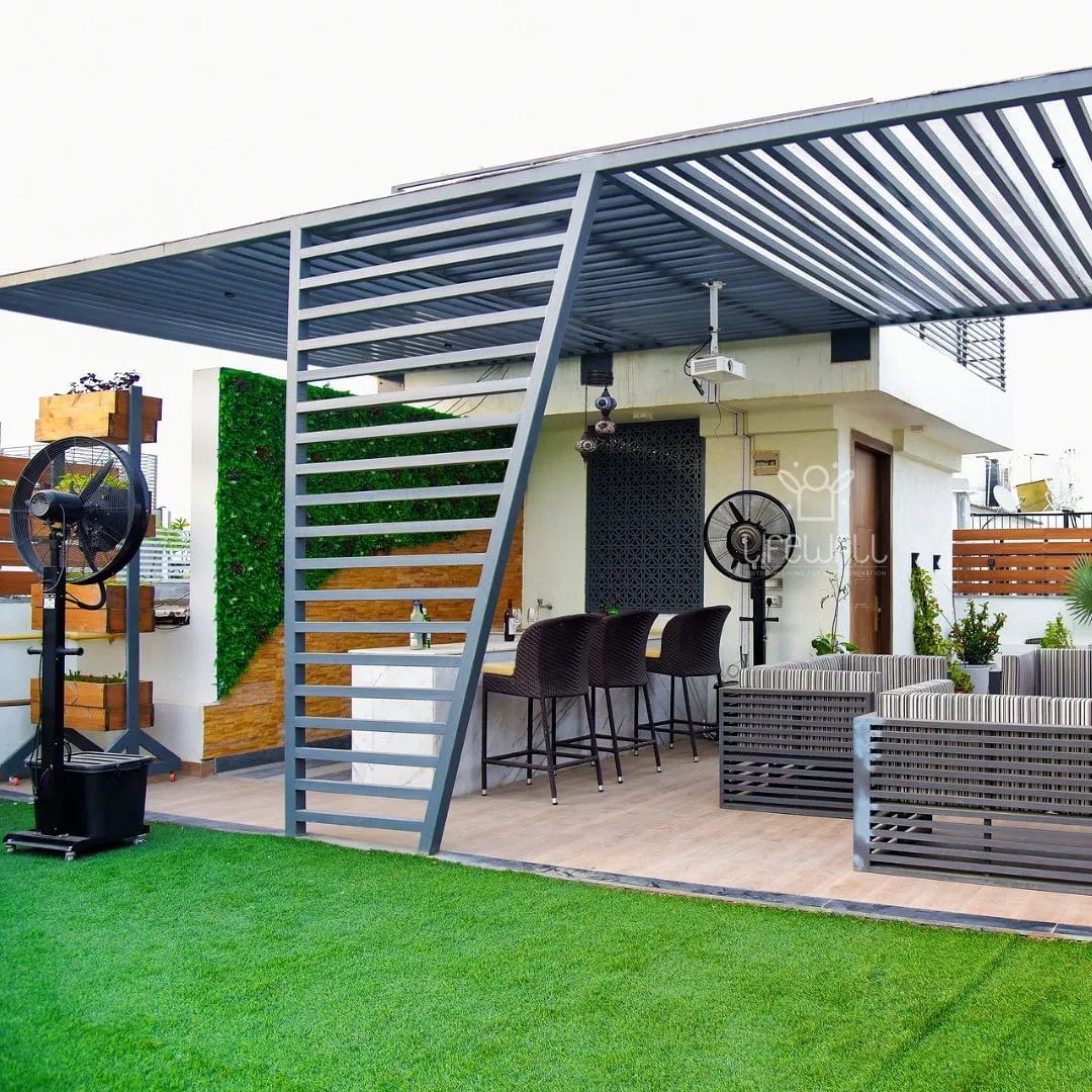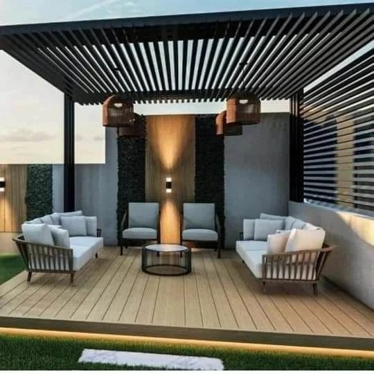 | ✅ جلسات وحدائق مظللة | مظلات خشبية وحديد ومكانس خارجية |